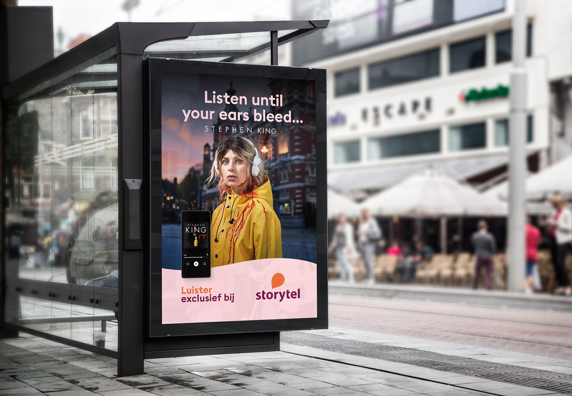 Sinds kort staan alle luisterboeken van Stephen King op Storytel. Je zou dus spreekwoordelijk kunnen blijven luisteren naar zijn bloedstollende verhalen 'until your ears bleed...' Dit was het inzicht voor deze campagne.